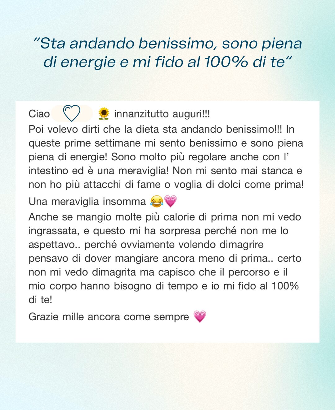 Le parole di chi ha già deciso di iniziare il percorso nutrizionale di Arya.